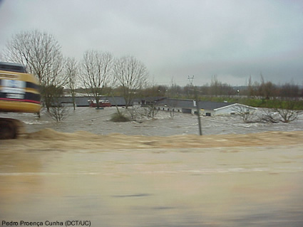 Cheias do Mondego no Inverno de 2000/2001. Local: Casais, Coimbra (fotografia obtida a partir da autoestrada A1).